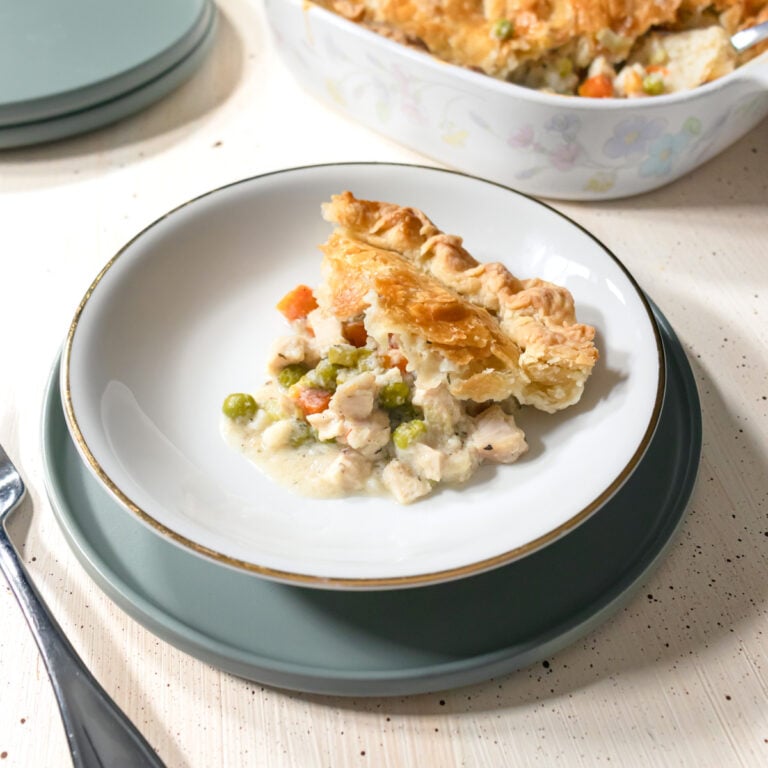 Baked Chicken Pot Pie Casserole with Flaky Pie Crust Topping